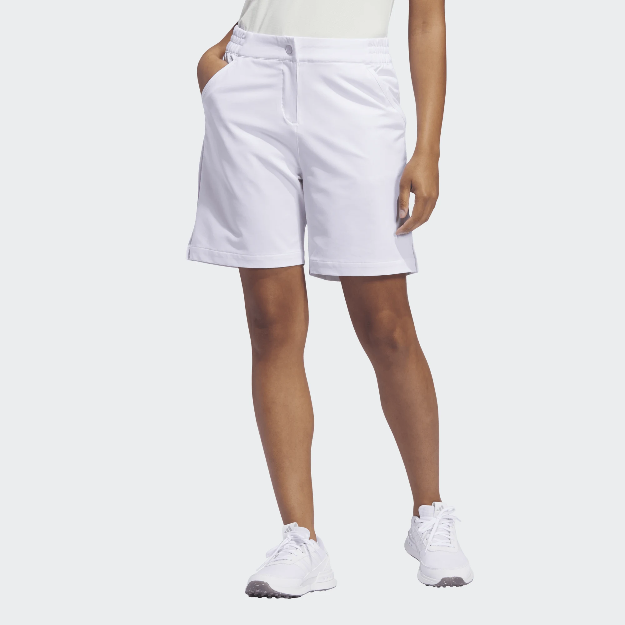 Die adidas W ULT C BRMDA Shorts in strahlendem Weiß (Modell: IS7129) bieten dir eine perfekte Kombination aus sportlicher Performance und stilvoller Optik. Mit ihrem knielangen Bermuda-Schnitt, dem atmungsaktiven Material und durchdachten Details ist diese Shorts wie gemacht für lange Golfrunden an warmen Tagen.