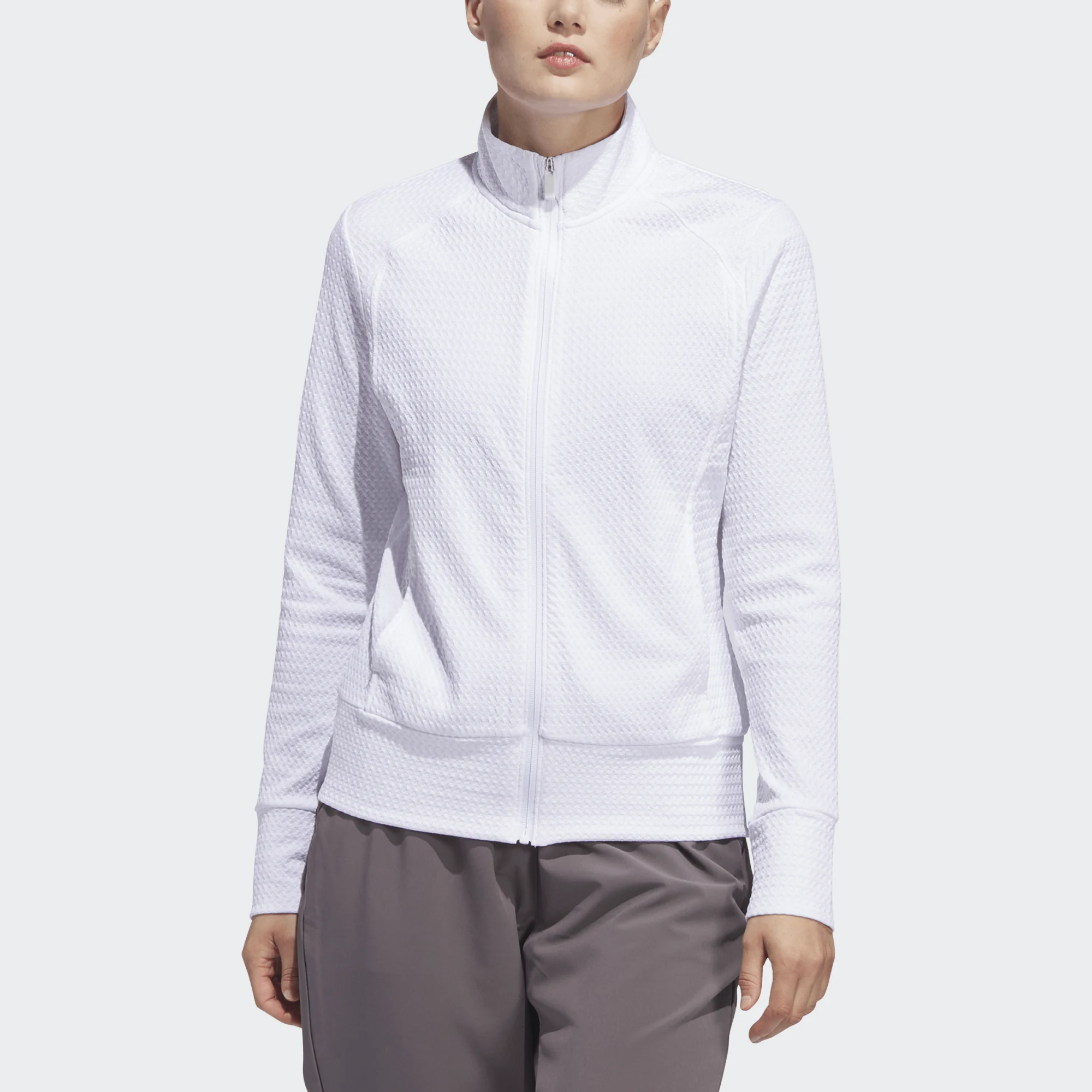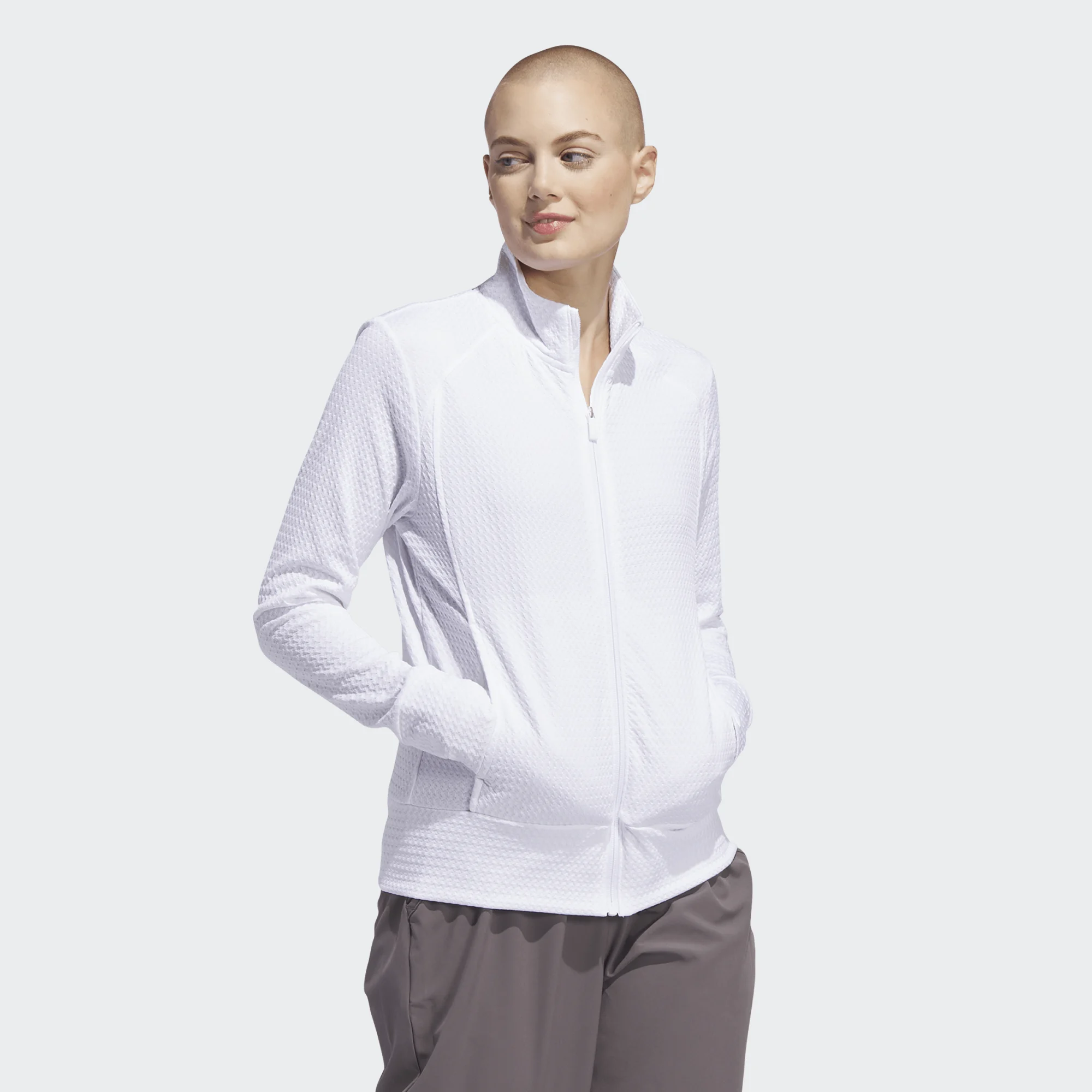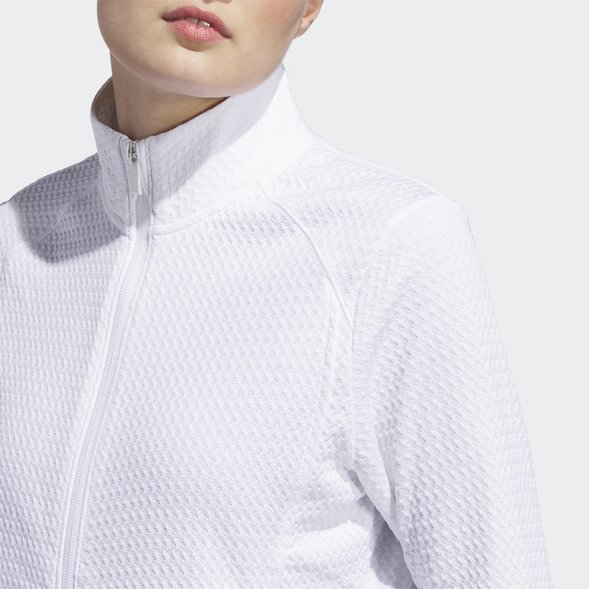 Dank der dezenten Struktur und des cleanen Weißtons lässt sich die Jacke mühelos zu jedem Golfoutfit kombinieren – für einen professionellen und zugleich eleganten Look auf und neben dem Platz.