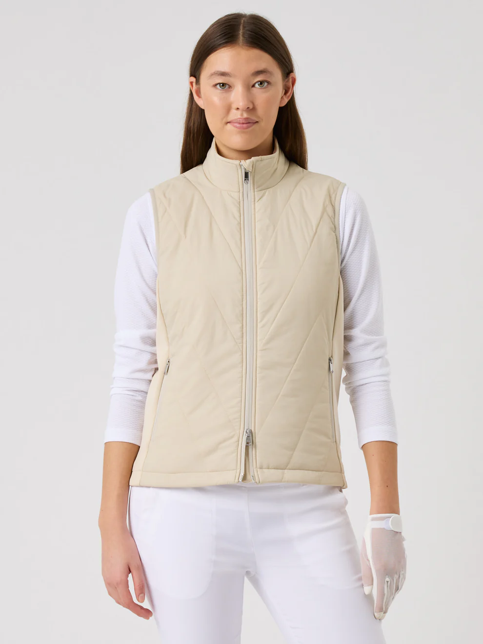 Die Daily Sports Flex Padded Weste für Damen in Beige ist ein vielseitiges Layering-Piece für Golferinnen, die Wärme, Bewegungsfreiheit und einen eleganten Look kombinieren möchten. Perfekt für kühle Morgenrunden, wechselhaftes Wetter oder sportliche Freizeit-Outfits. ⛳