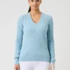 Das Design überzeugt durch das klassische Zopfmuster (Cable Knit), das dem Pullover eine zeitlose, elegante Struktur verleiht. Der feminine V-Ausschnitt sowie die leicht taillierte Passform sorgen für eine schmeichelhafte Silhouette und vielseitige Kombinationsmöglichkeiten – sportlich oder elegant.