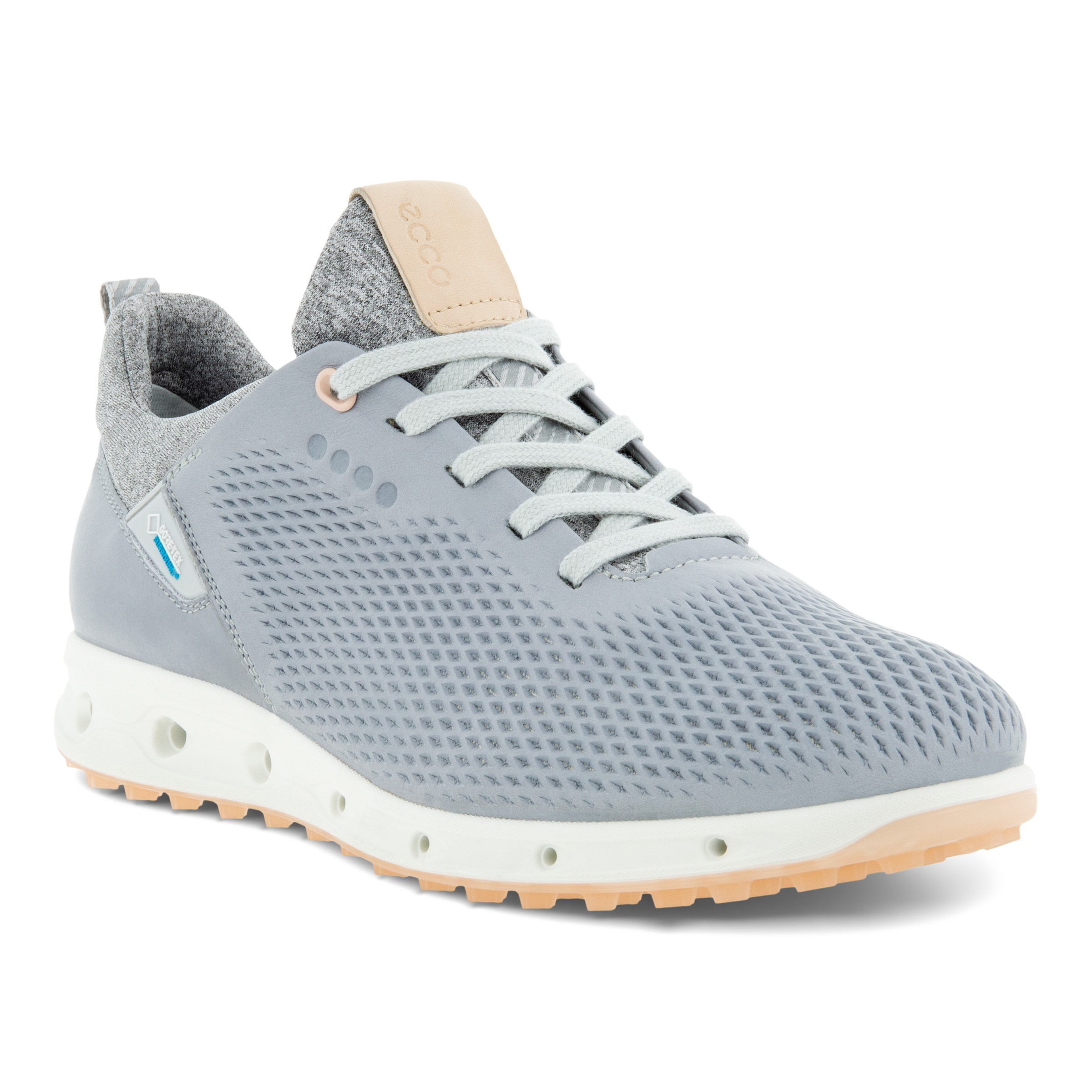 Der ECCO W GOLF COOL PRO sorgt für atmungsaktiven Komfort und ist bei jedem Wetter eine zuverlässige Wahl. Dieser Damengolfschuh ohne Spikes mit GORE-TEX SURROUND®-Technologie und Luftkanälen in der Zwischensohle lässt den Fuß rundum atmen und ist 100 % wasserdicht. Die E-DTS®-Außensohle bietet Komfort und ausgezeichnete Griffigkeit bei allen Witterungsbedingungen.