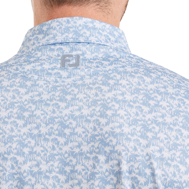 Das FootJoy Palmen Lisle Polo kombiniert klassische Eleganz mit einem frischen, sommerlichen Akzent – perfekt für Golfrunden unter blauem Himmel oder sportlich-entspannte Freizeit-Looks. Die harmonische Farbkombination aus Hellblau und Weiß wird durch ein dezentes Palmenmotiv ergänzt, das dem Polo eine moderne, lässige Note verleiht.