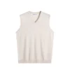 Das feine Strickbild (12–14 Gauge) sorgt für eine elegante, glatte Oberfläche, während der klassische V-Ausschnitt die Weste perfekt zum Layering über Hemden oder Polos macht. Gerippte Abschlüsse an Kragen, Armausschnitten und Saum garantieren eine optimale Passform und hohen Tragekomfort.