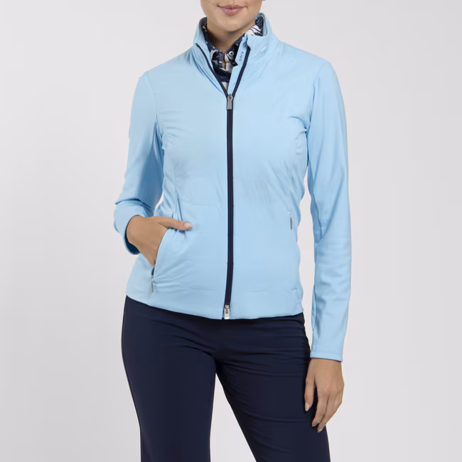 Die KJUS Reach Jacket für Damen in Poolside / Atlanta Blau ist eine hochfunktionelle Performance-Jacke für kühle Golfrunden. Sie kombiniert moderne Technologie mit femininem Design und bietet optimale Wärme, ohne die Bewegungsfreiheit einzuschränken.