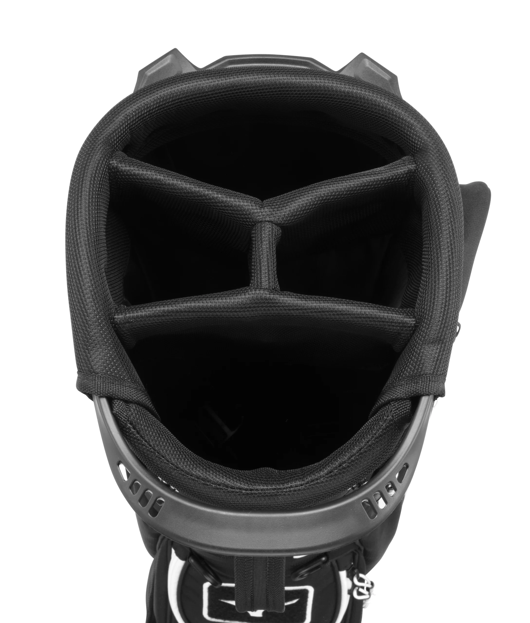 Die Mizuno BR-D3 Stand Golftasche in Schwarz/Weiss ist die perfekte Wahl für Golfer, die Wert auf leichtes Tragen, durchdachte Organisation und sportliches Design legen. Mit nur ca. 1,8 kg Gewicht bietet sie maximalen Komfort auf der Runde – egal ob 9 oder 18 Loch.