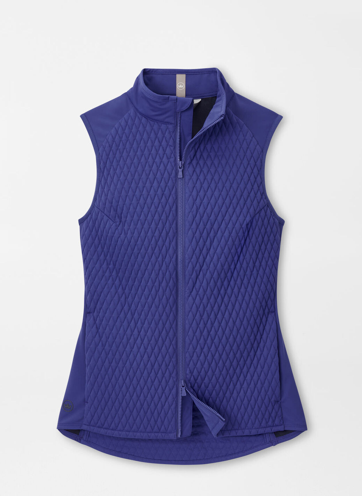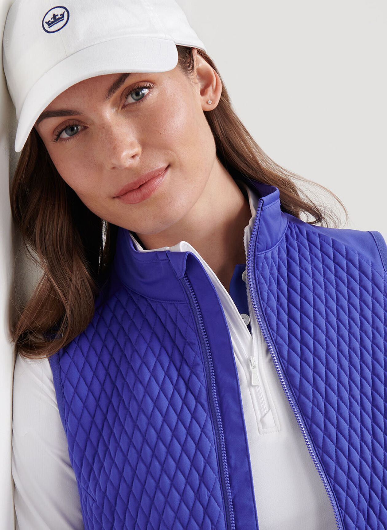 Die Fuse Mini Diamond Quilt Weste von Peter Millar in Pacific Blau ist die perfekte Mischung aus technischer Performance und stilvoller Ästhetik. Ein Must-have für aktive Frauen mit Sinn für Qualität und Mode. 🌊✨