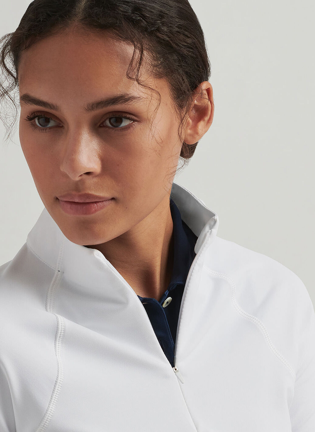 Der Perth Raglan-Sleeve Layer von Peter Millar ist ein zeitloser Klassiker in sportlich-femininer Ausführung. In edlem Weiß gehalten, vereint er technischen Komfort mit stilvollem Design – ideal für kühle Morgenstunden auf dem Golfplatz oder als vielseitige Midlayer in der Freizeit.
