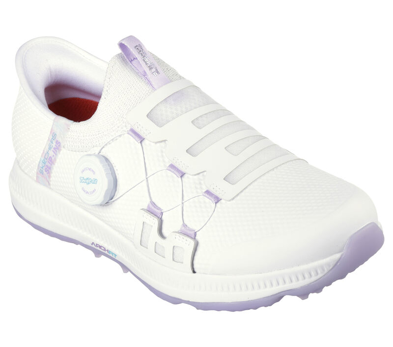Unterstütze deinen Swing mit dem bequemen Skechers Slip-insĀ®: GO GOLF Elite 5⢠– Slip ‚In. Dieser wasserdichte Golfschuh mit unserem exklusiven Heel Pillow⢠verfügt über ein synthetisches Obermaterial mit einem einzigartigen TwistĀ Fitā¢-Drehverschluss, eine herausnehmbare ArchĀ Fit-Innensohle und eine stollenfreie GRIPFLEX-Laufsohle.