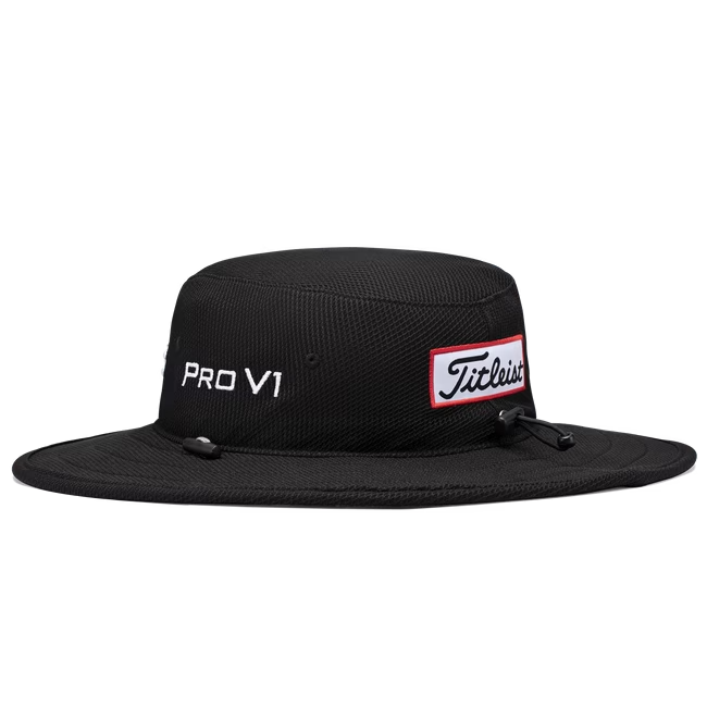 Der perfekte Schutz bei viel Sonne mit Titleist-Tour-Beschriftung: Großes 3D-Sticklogo vorne, „Pro V1“ und FJ an der Seite und Tour-Patch hinten. Eine tiefe Passform und die breite Krempe schützt Augen, Ohren und Hals. Der Stoff ist aus Stretch-Material und ein verstellbarer Verschluss für hohen Tragekomfort.