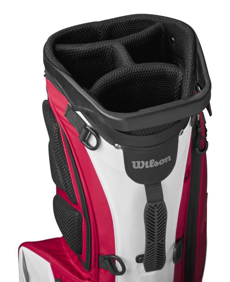 Das Wilson Staff EXO Lite Standbag in Rot kombiniert sportliches Design mit durchdachter Funktionalität – perfekt für Golfer, die ein leichtes, komfortables und gleichzeitig robustes Bag suchen.